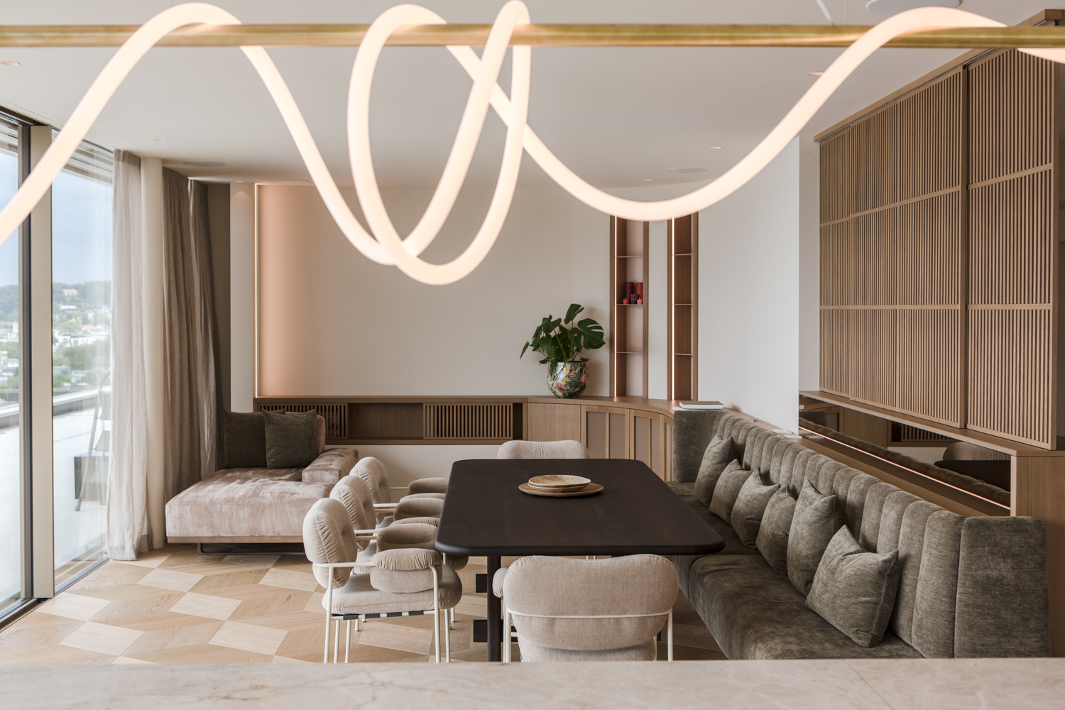 Raffiniertes Wohnen, gemeinsames Essen